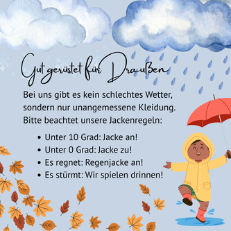 Leider fehlen uns noch Rückläufe von den Kenntnisnahme-Abschnitten bezüglich unserer Entlassregeln. Bitte geben Sie den unterschriebenen Abschnitt ihrem Kind in die Postmappe oder werfen ihn in unseren Eichhörnchenbriefkasten. Lieben Dank für Ihre Kooperation.
