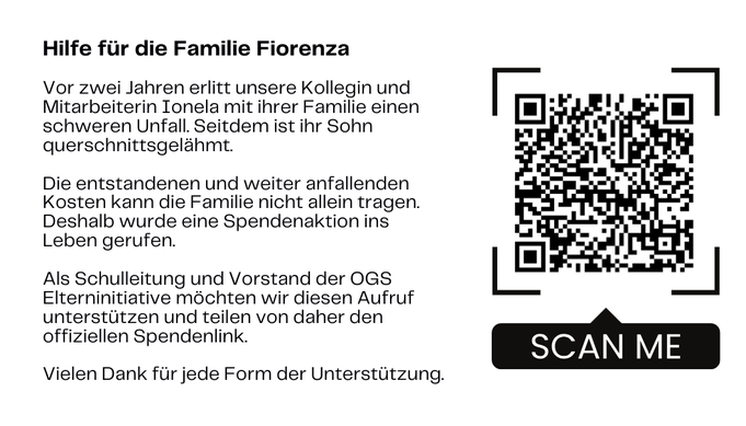Eine kleine Bitte: In der OGS betreuen wir derzeit 280 Kinder. Wenn Sie uns kontaktieren, geben Sie bitte immer den Namen Ihres Kindes und das Cluster (A, B oder C) an, damit wir Ihr Kind rasch zuordnen können.